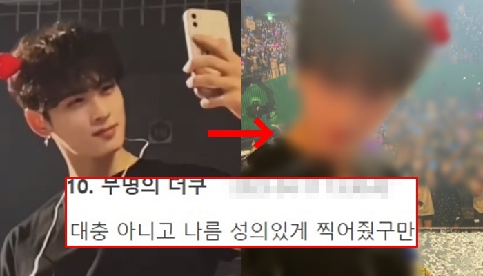 차은우가 팬의 휴대폰으로 3초만에 셀카 대충 찍은 결과물